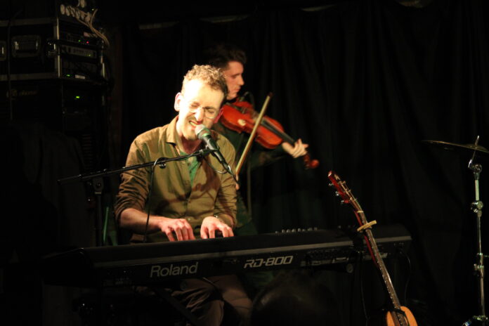Paddy’s band comprised of a violinist, drummer, a guitarist who favoured an electric guitar, alongside Emily on bass. Paddy himself occasionally arose from his keyboard to play acoustic guitar for some of the more upbeat, rhythmic numbers but he spent most of the gig playing his much loved keyboard.