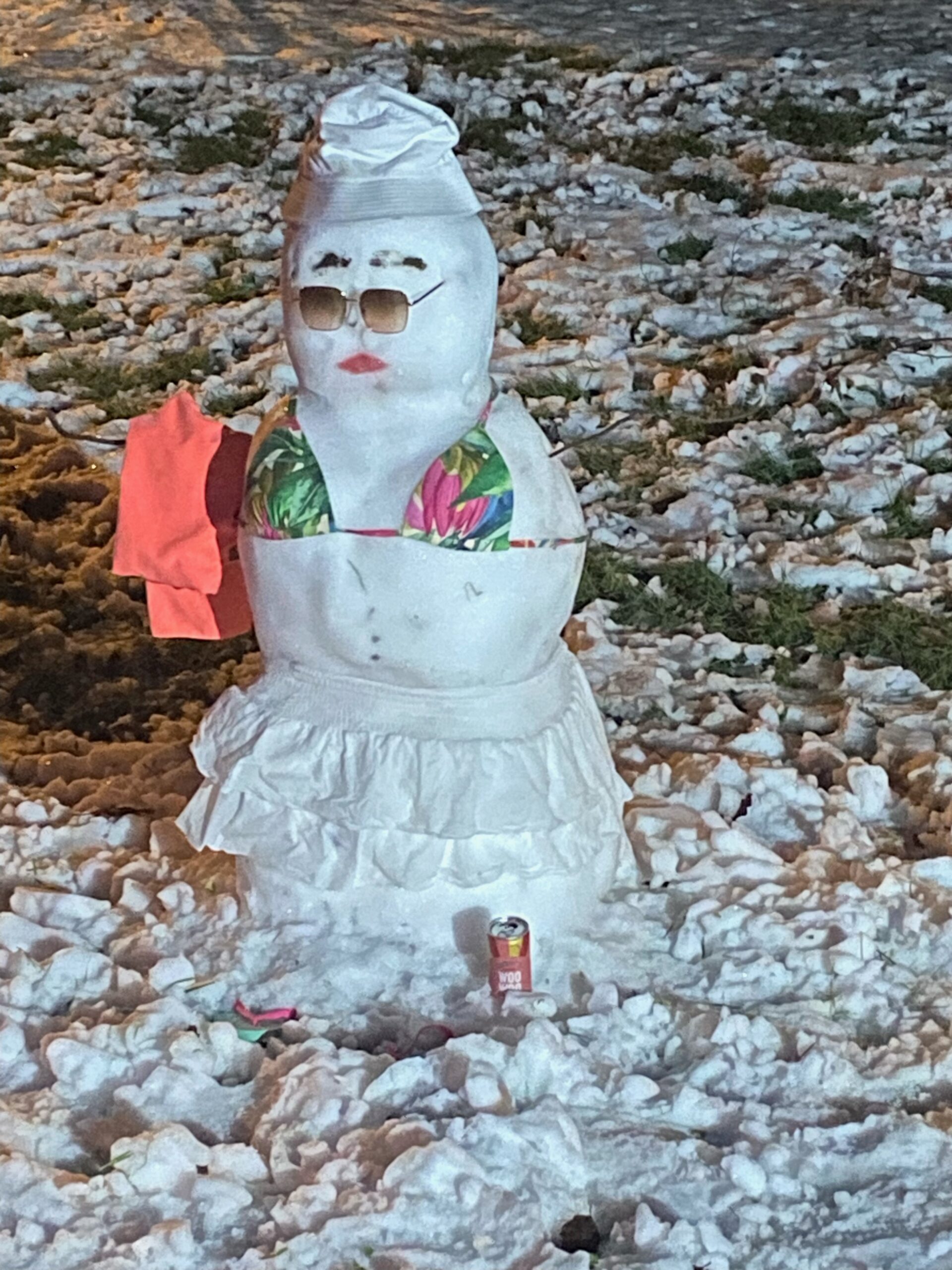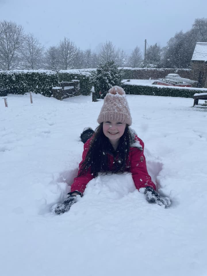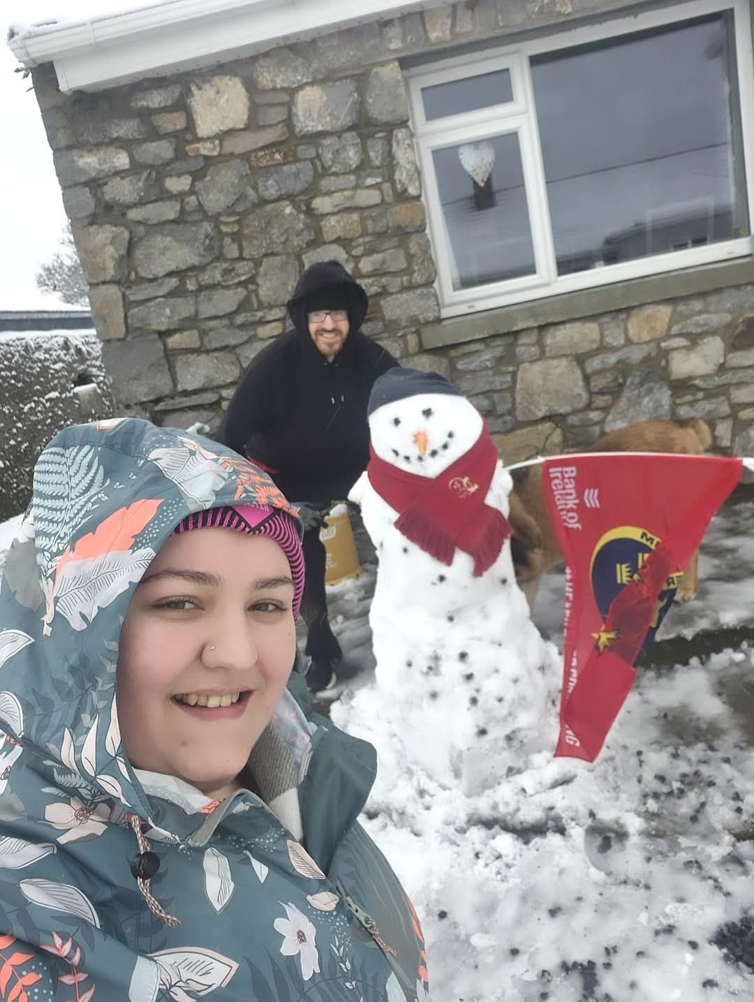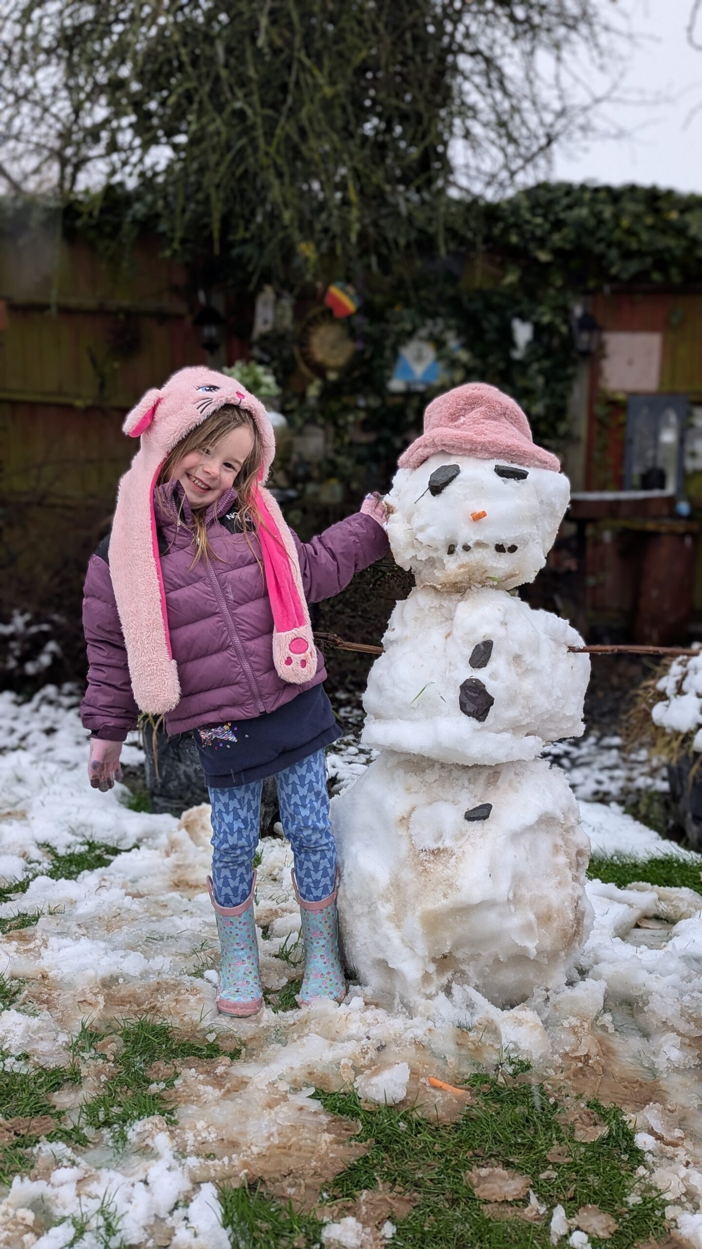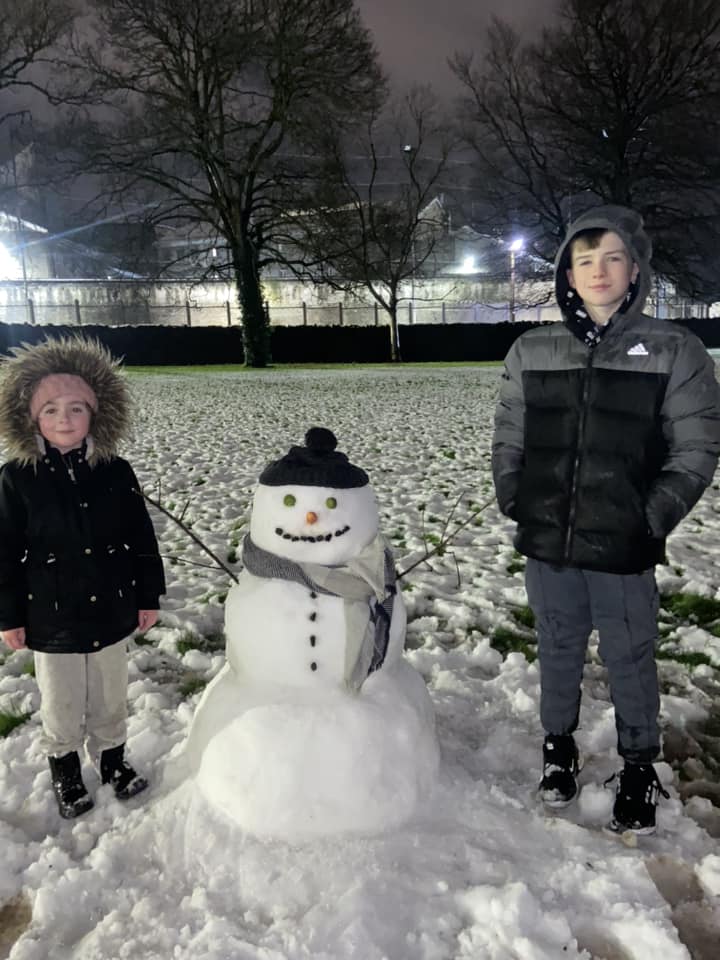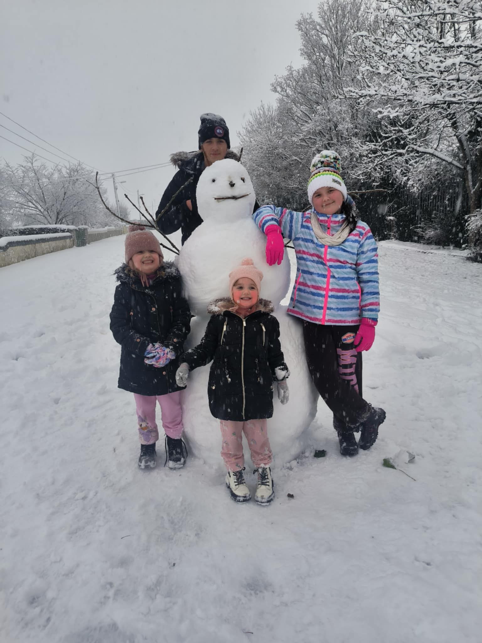 Betty the snowwoman enjoying the weather, sent in by Emily and Holly O’Dwyer.