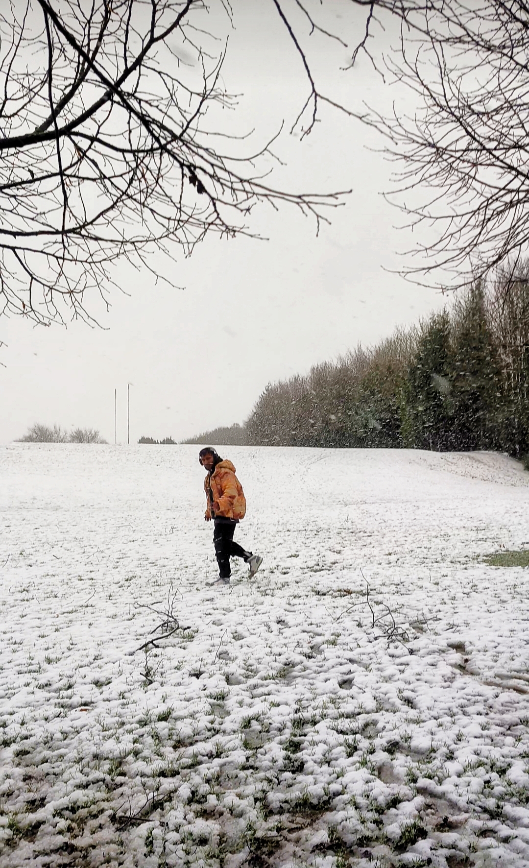 Olivia Fitzgerald taking time to enjoy the snowfall in Croom.