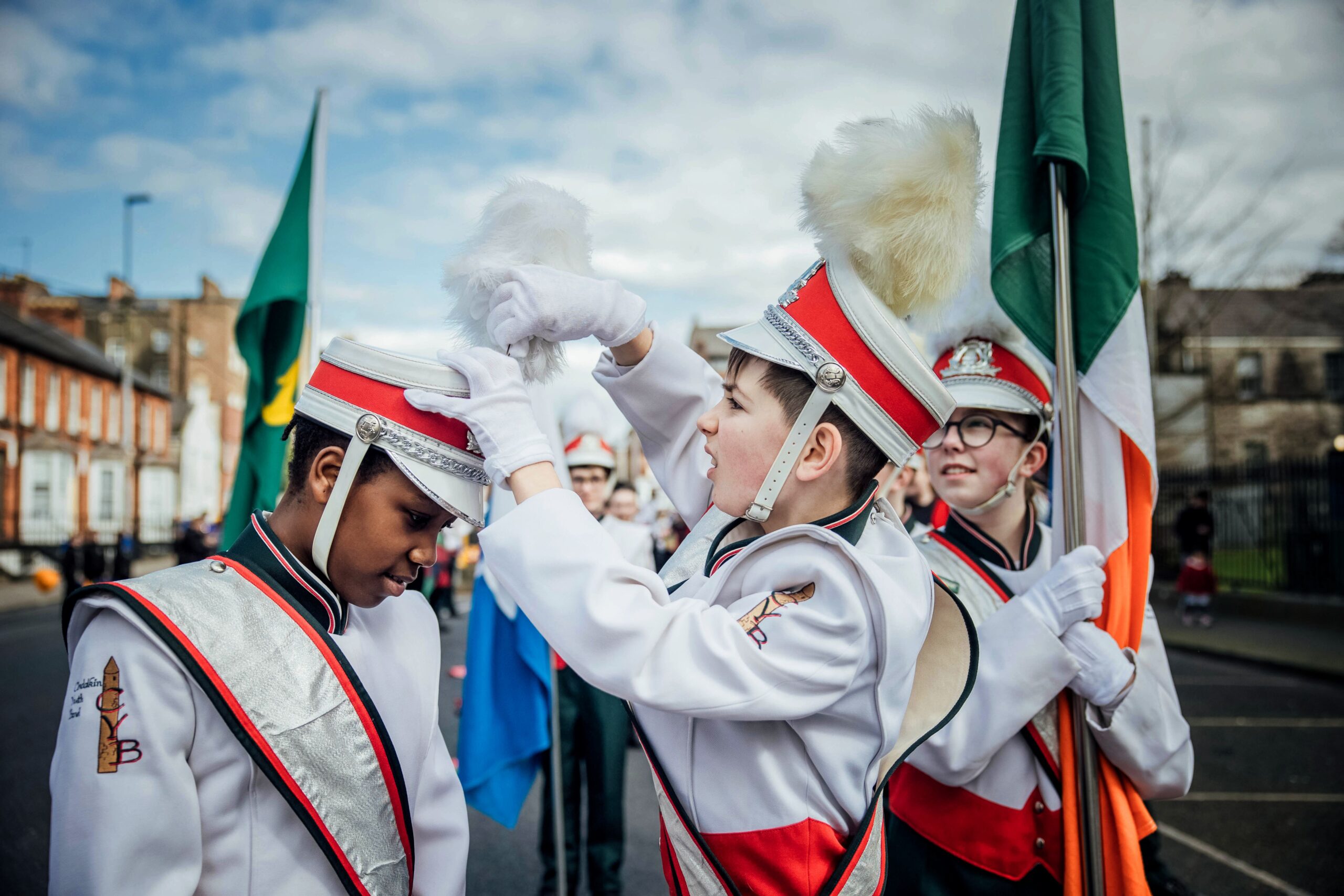 Getting ready at the Limerick International Band Parade as part of the Limerick St Patricks Day Weekend. Photo: Brian Arthur.