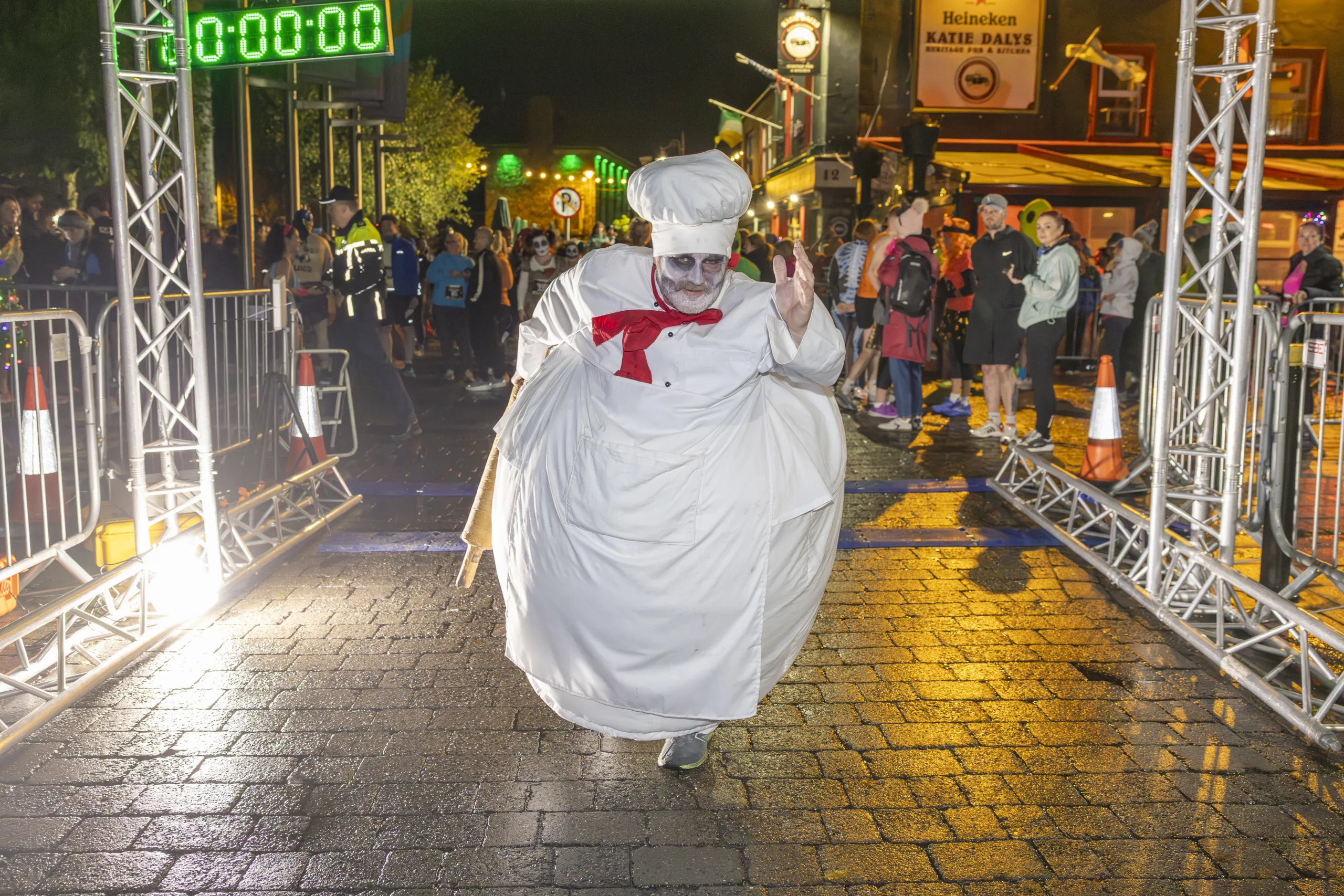 KRB 30-10-2025 LCCC Twilight Thursday -October Twilight Thursdays Halloween fancy dress Limerick Night Run - Baker Mark Dempsey on the run - Picture by Kieran Ryan-Benson