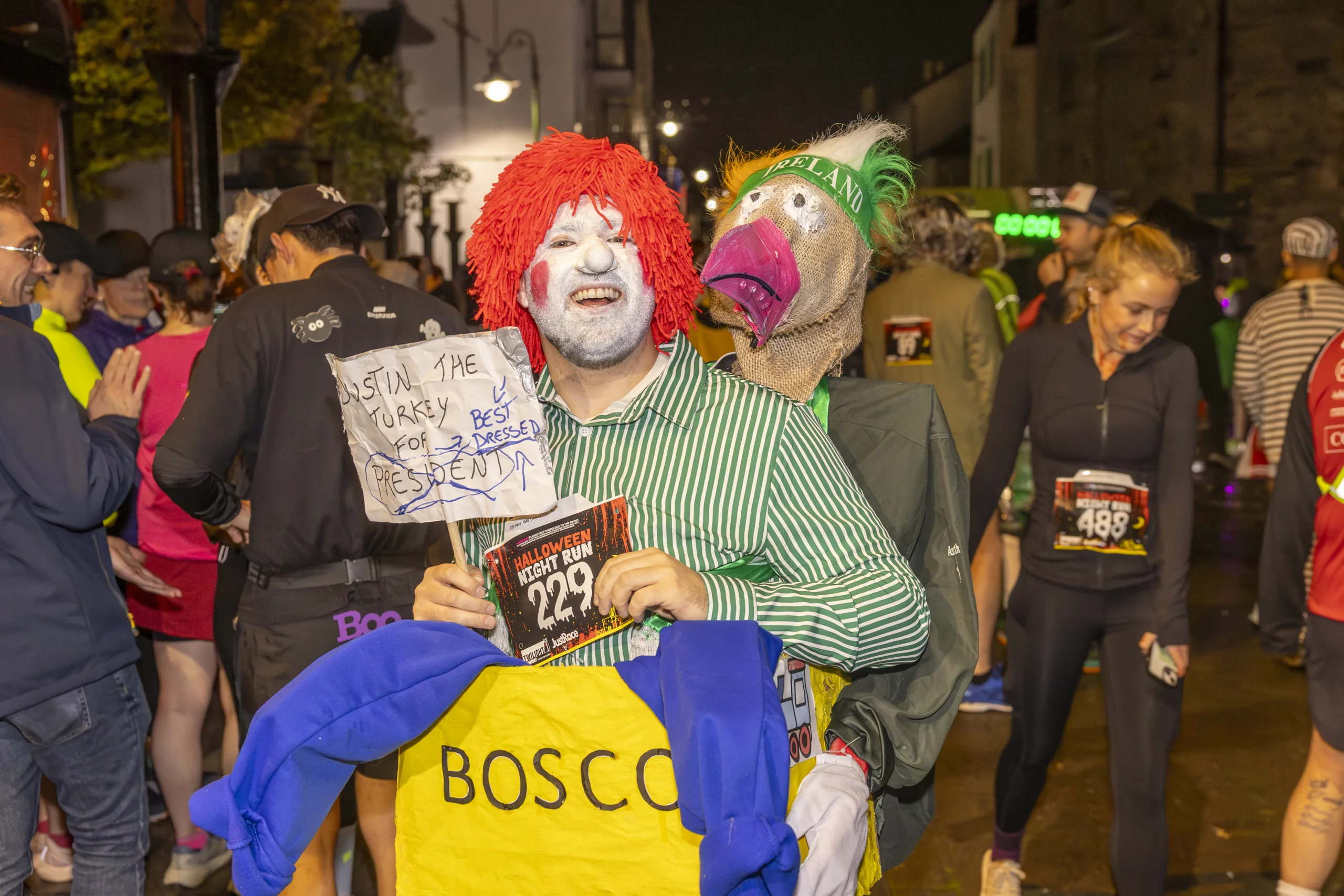 KRB 30-10-2025 LCCC Twilight Thursday -October Twilight Thursdays Halloween fancy dress Limerick Night Run - Bosco and Dustin before the run - Picture by Kieran Ryan-Benson