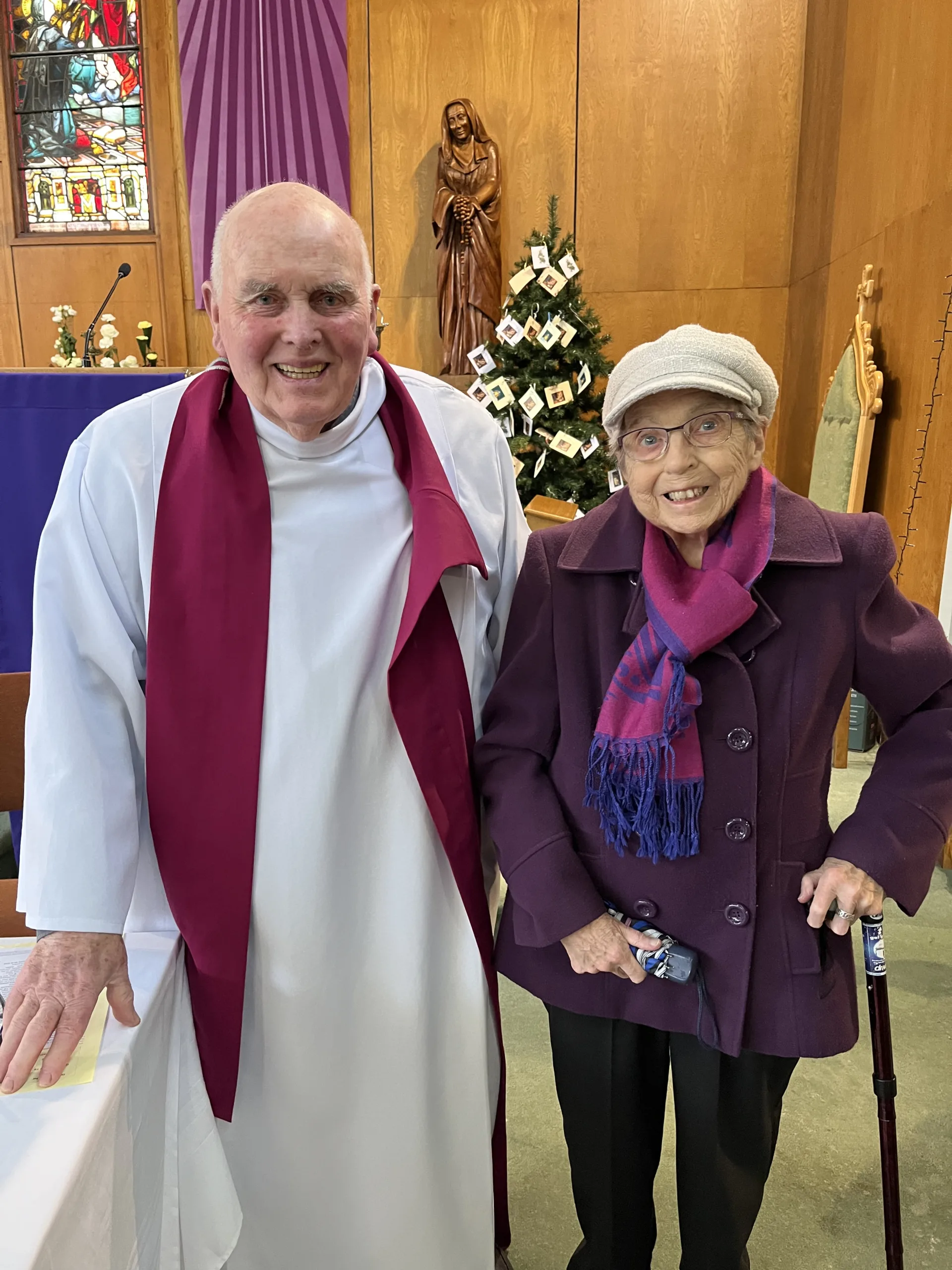 Fr Tom Ryan and Sister Mary McInerney, Salesian Sisters, at the Holy Rosary Parish Church 75th anniversary celebrations. Photo: James Dormer.