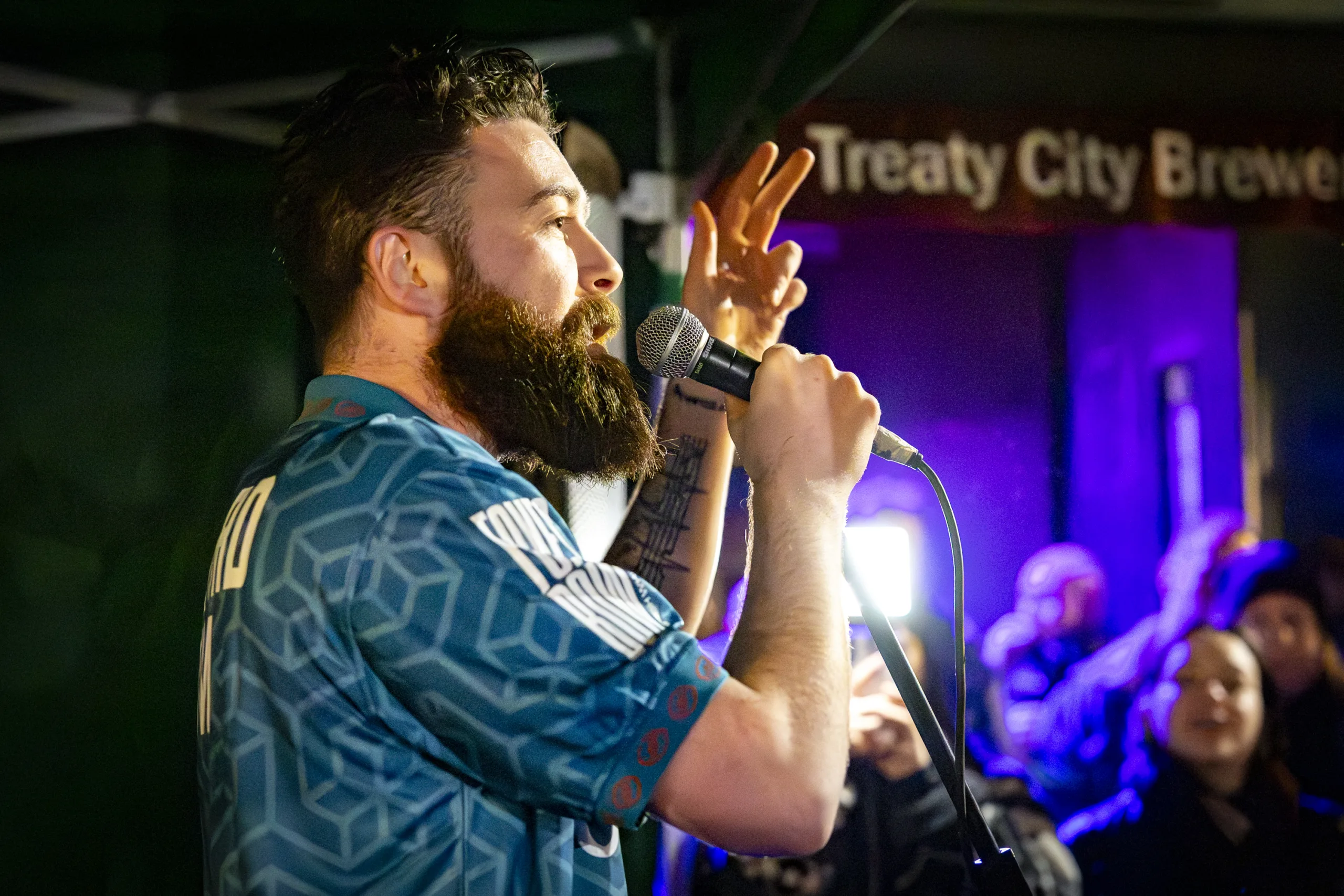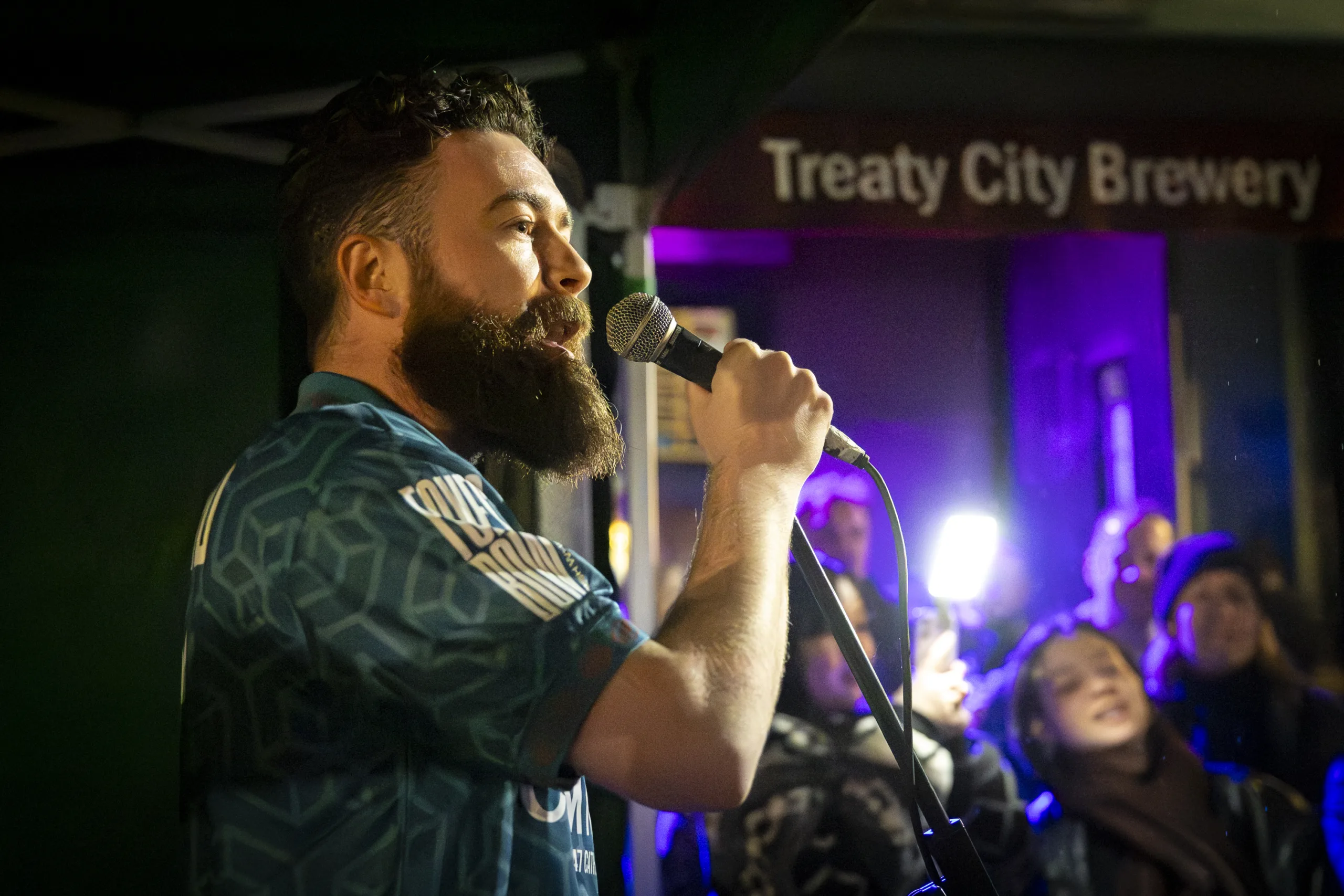 Hazey Haze performing at the launch of his new album 'For All The Island Field' at the Treaty Christmas Market on Nicholas Street. Photo: Kieran Ryan-Benson.