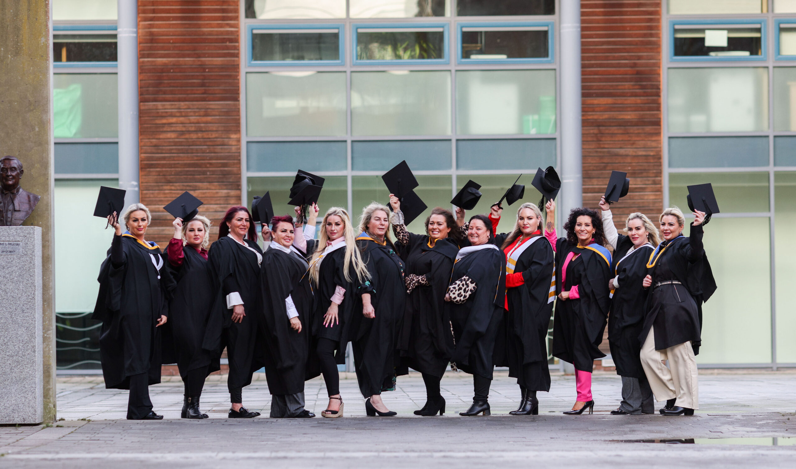 Ellen O'Reilly, Kathleen O'Reilly, Noreen Casey, Bridie Casey, Margaret O'Brien, co-founder of Limerick Traveller Network (who graduated with a BA in Psychology), Olive O'Reilly, co-founder of Limerick Traveller Network (who graduated with an MA in Sociology), Kathleen Casey, Crystal O'Reilly, Ellen Casey, Amanda McCarthy and Linda Kileen at UL's 2026 winter conferring ceremony. Photo: Alan Place