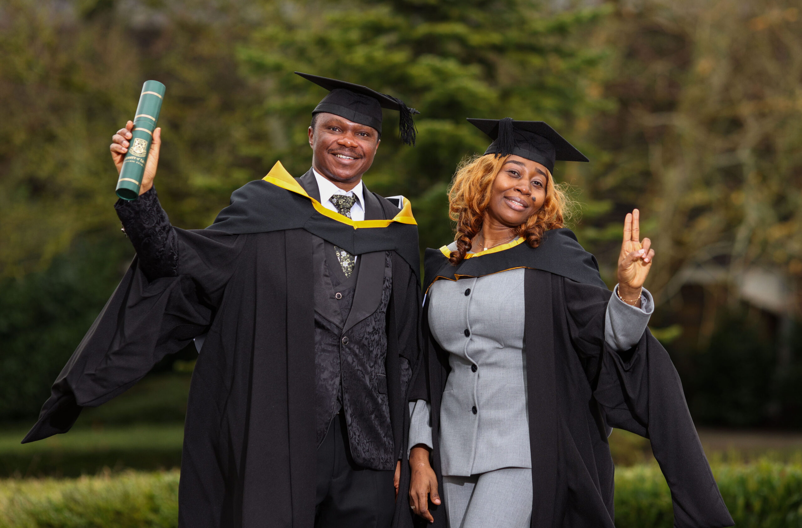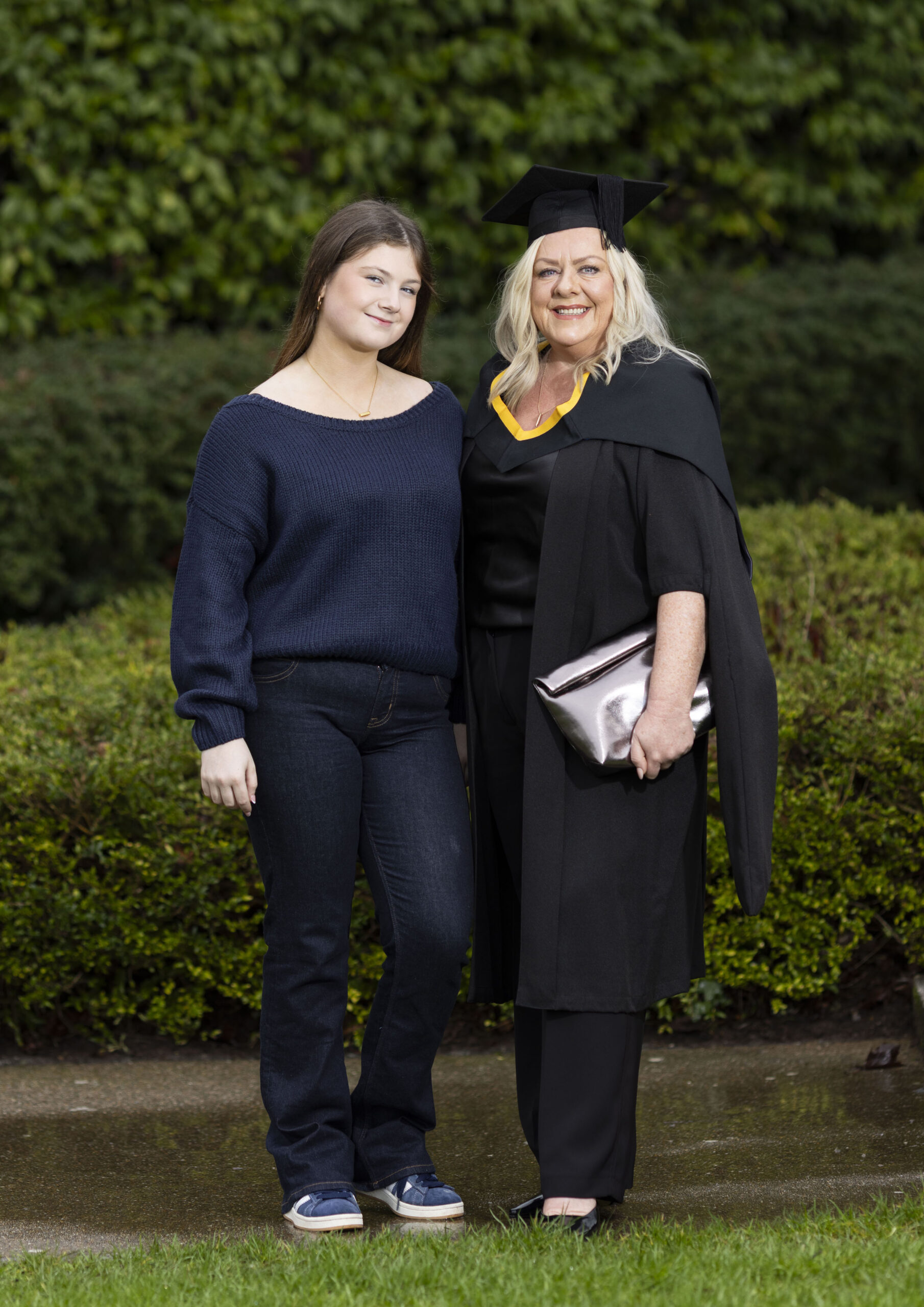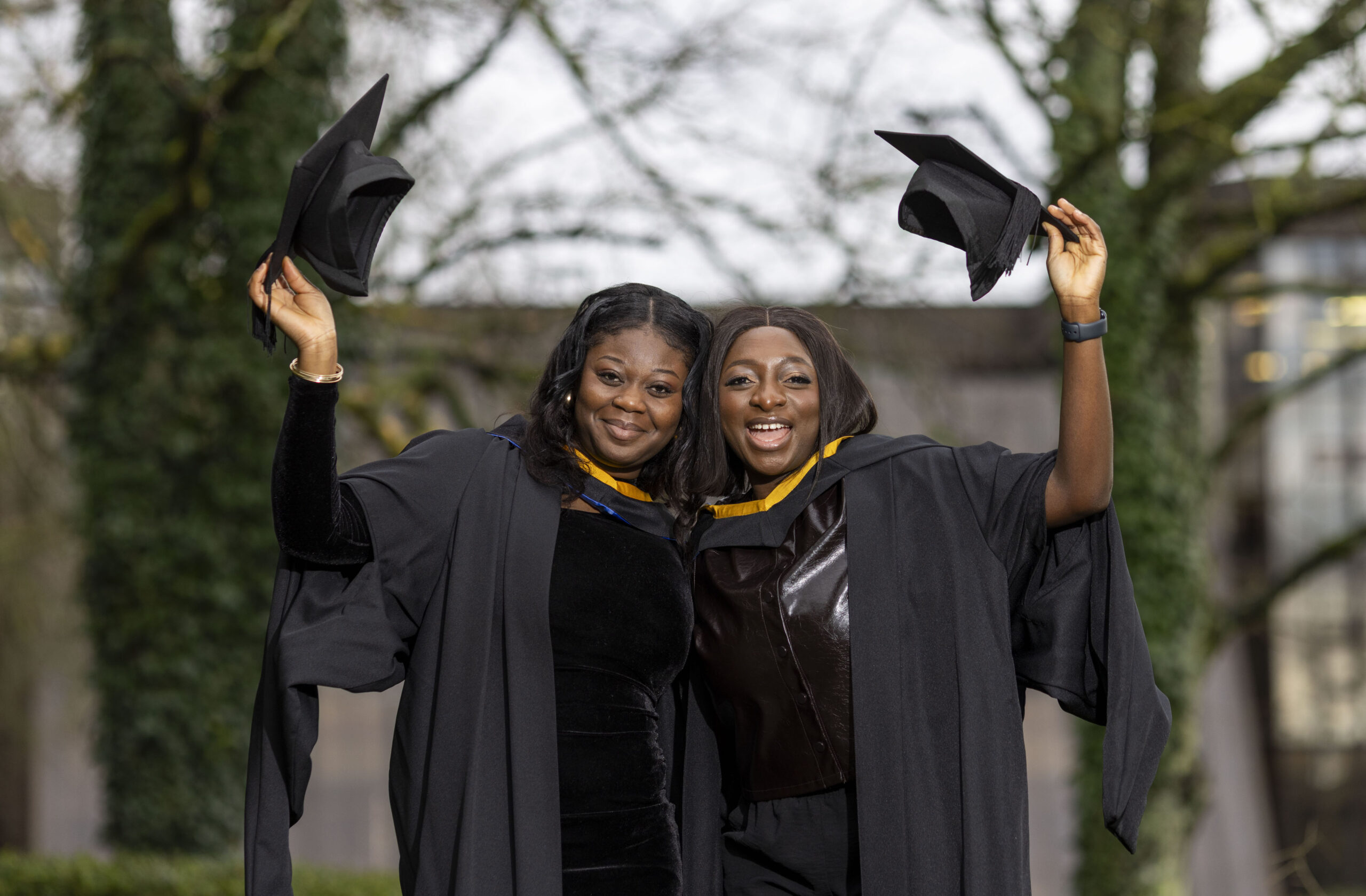 Queen Alita Peter Giseh with her sister Laura Morgan at UL's 2026 winter conferring ceremony. Photo: Arthur Ellis
