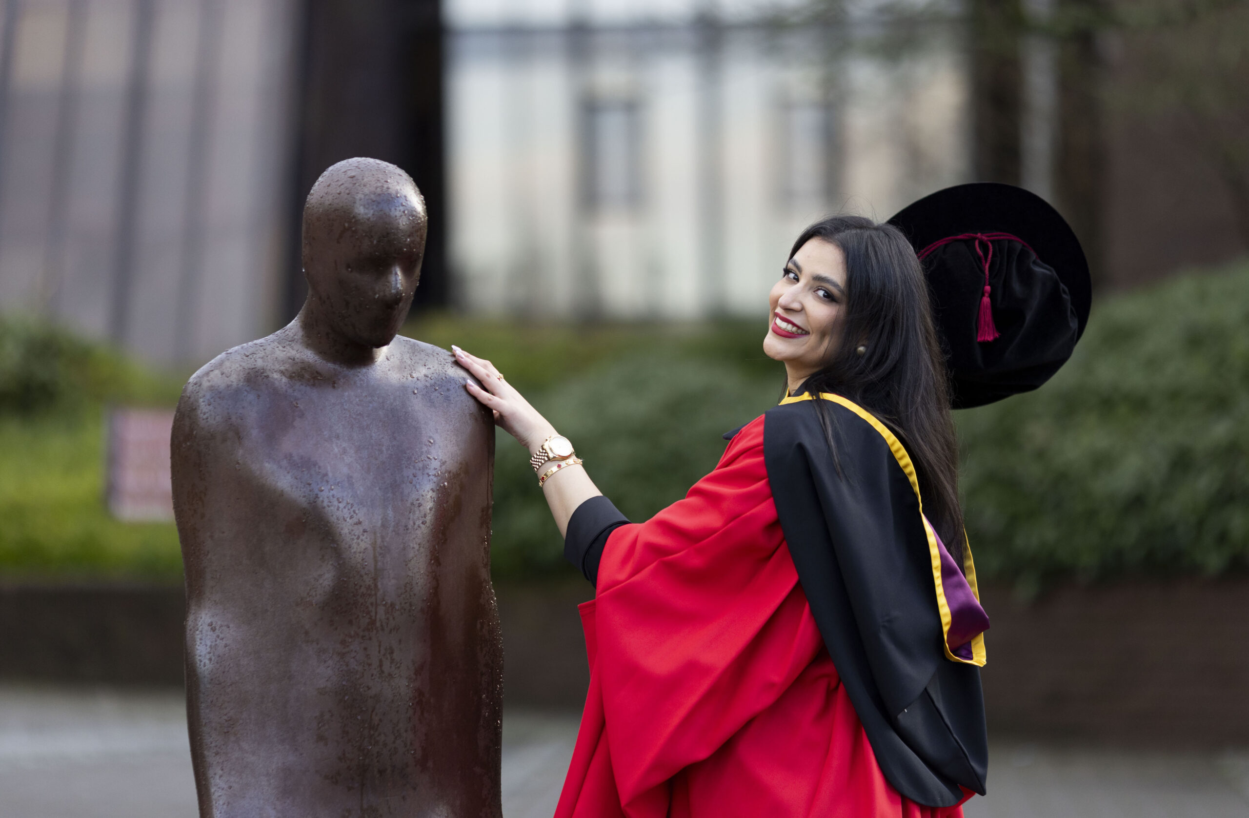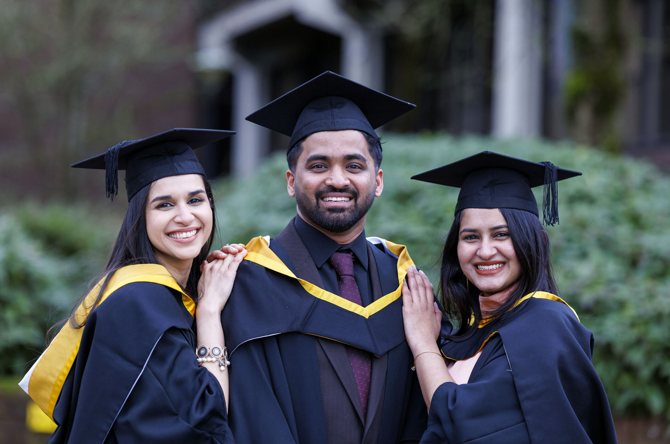 Gloria Lainez,Telvin Babu and Shephy Tom at UL's 2026 winter conferring ceremony. Photo: Arthur Ellis