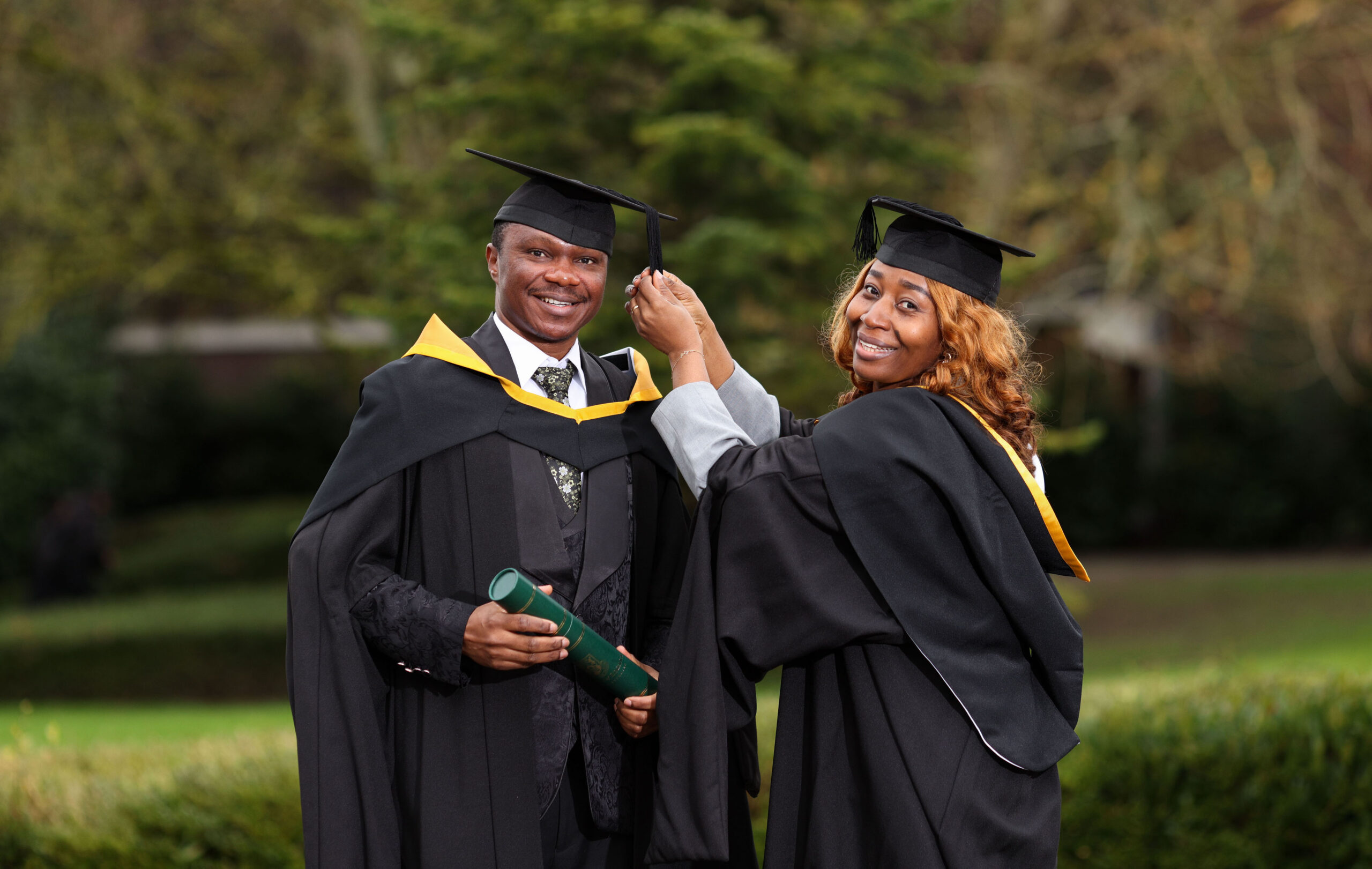 Husband and wife Madhusudhan Navilappa and Chidananda Praneetha at UL's 2026 winter conferring ceremony. Photo: Arthur Ellis