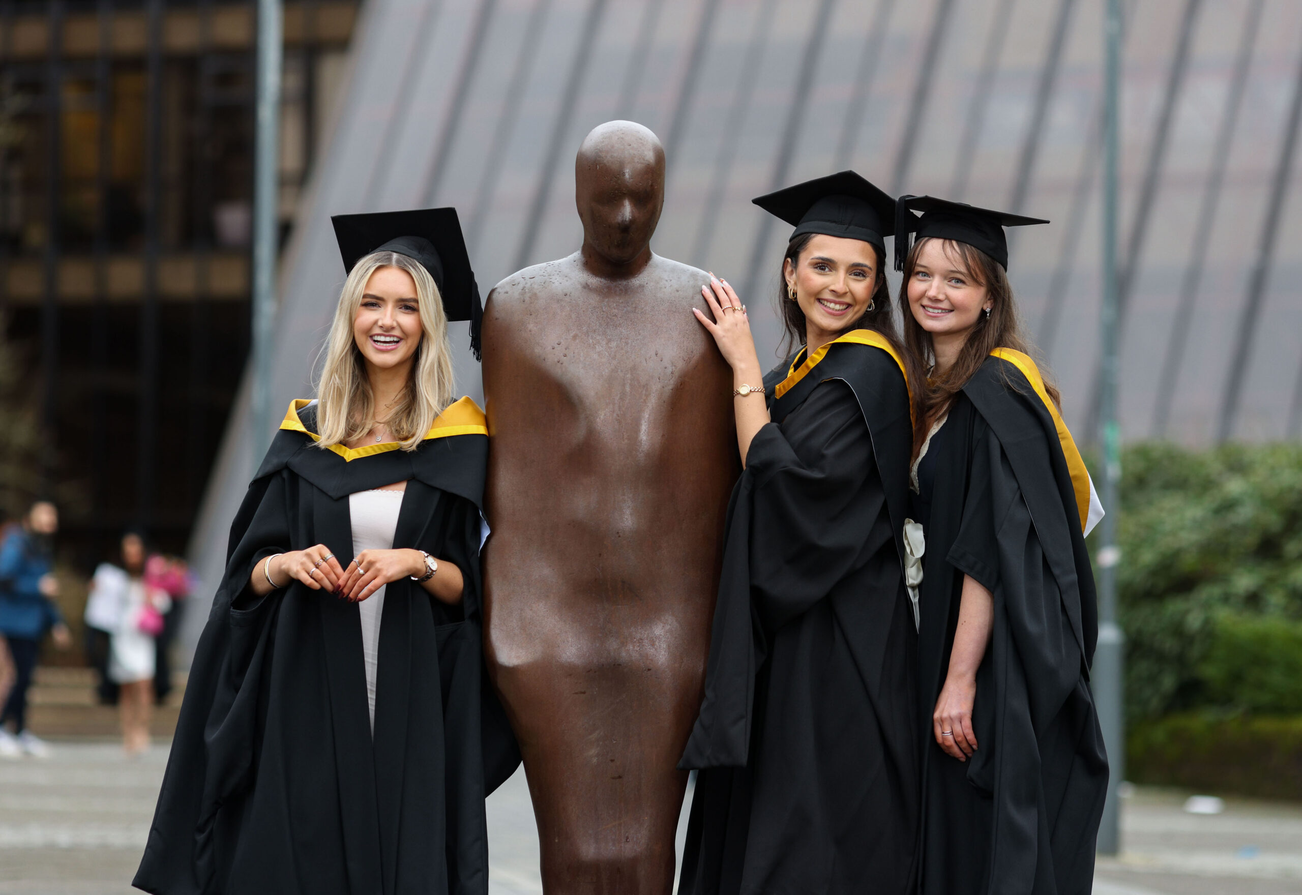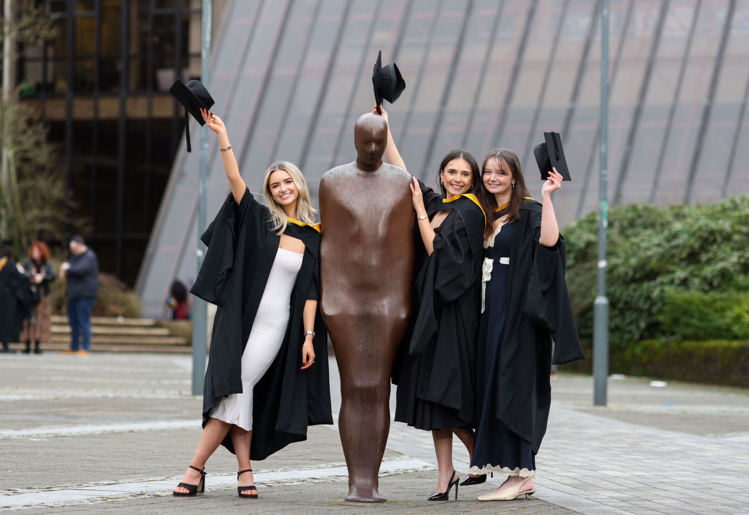 Emma Lillis, Farrah O'Connell, Anne Gallagher at UL's 2026 winter conferring ceremony. Photo: Alan Place