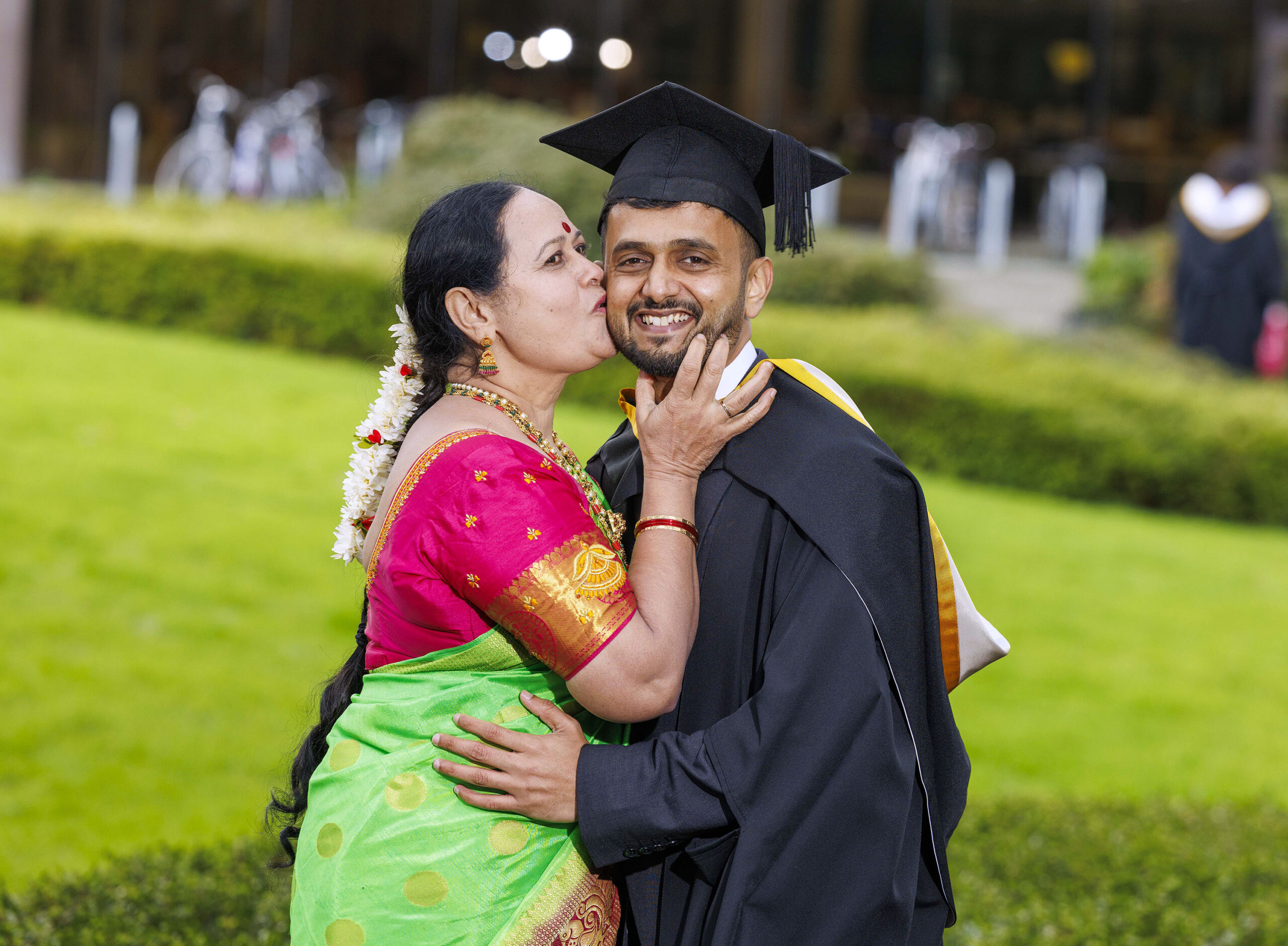 Madhusudhan Navilappawith his mum Shatnhala at UL's 2026 winter conferring ceremony. Photo: Arthur Ellis