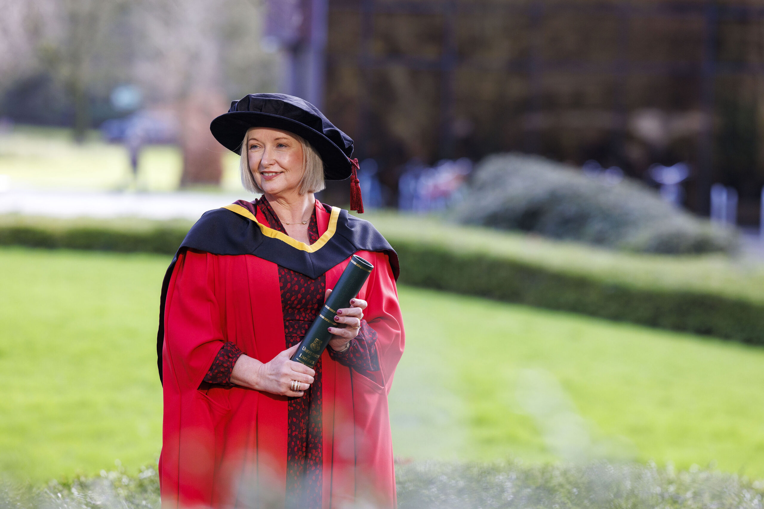 Olive O'Reilly, co-founder of Limerick Traveller Network at UL's 2026 winter conferring ceremony. Photo: Alan Place