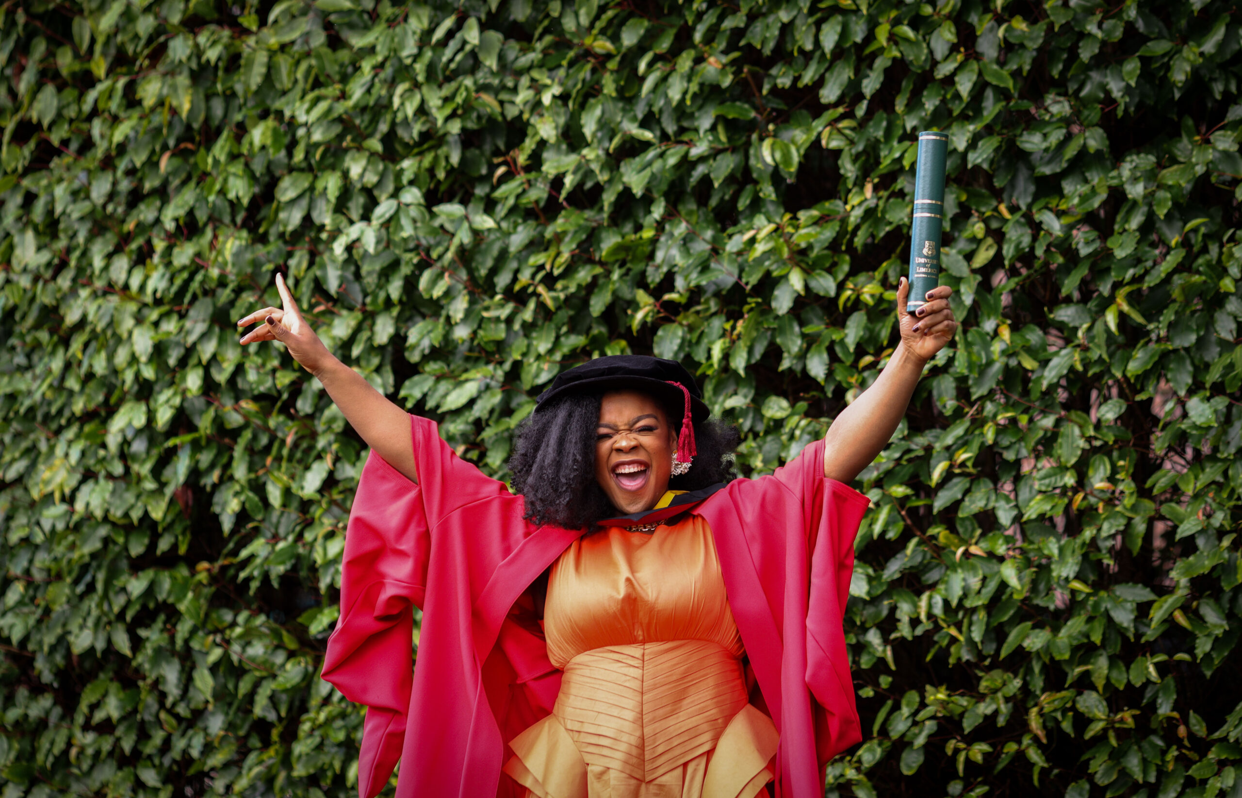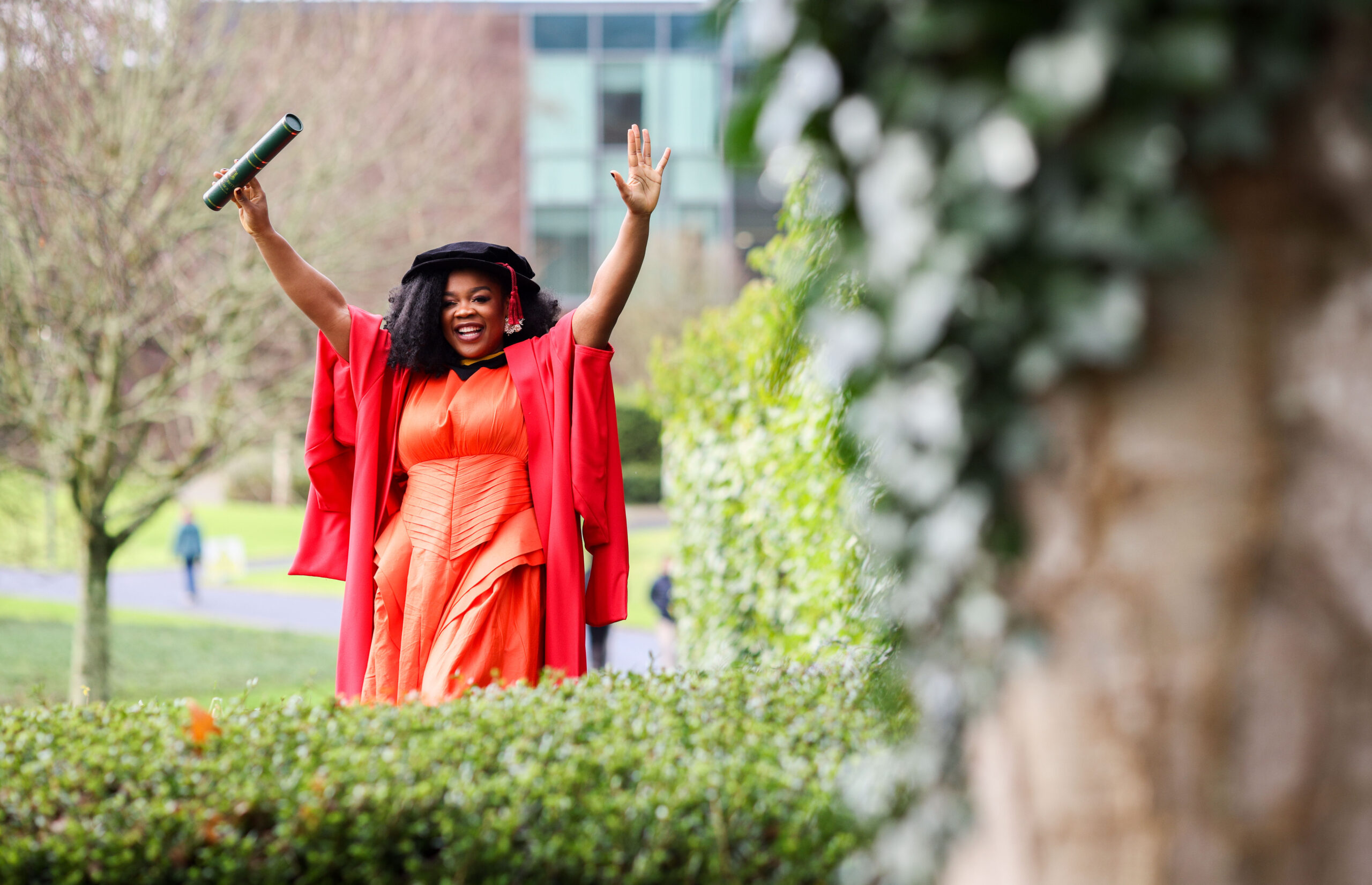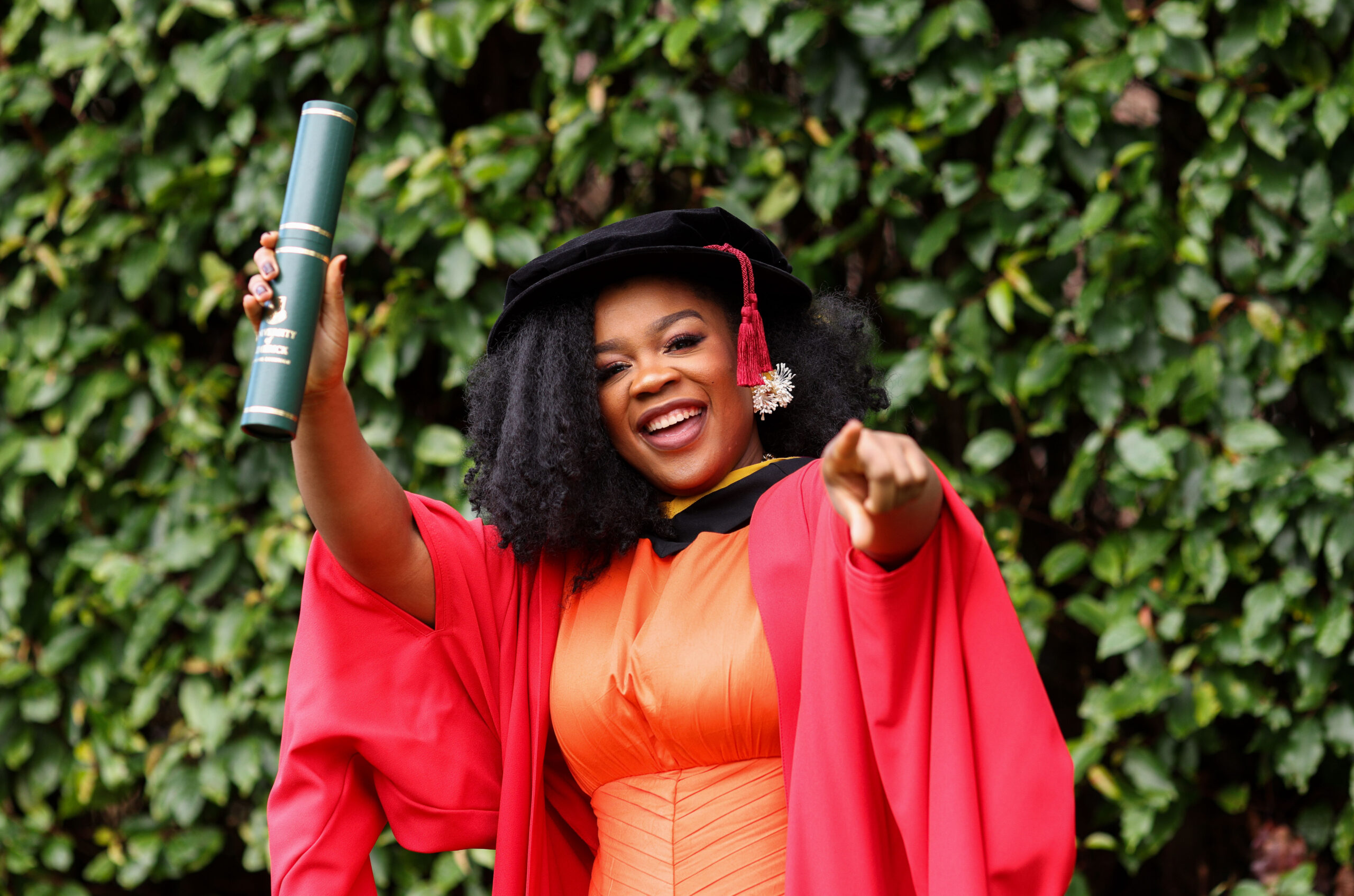 Dr Mamobo Ogoro, the CEO and founder of social enterprise, GORM, and presenter of Newstalk’s ‘Younified’ podcast at UL's 2026 winter conferring ceremony. Photo: Alan Place