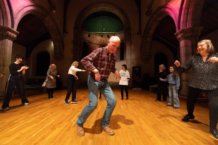 Bobby O'Brien and friends enjoying an evening with high kicks at Dance Limerick at the PURE Limerick Arts Festival. Photo: Eamon Ward.