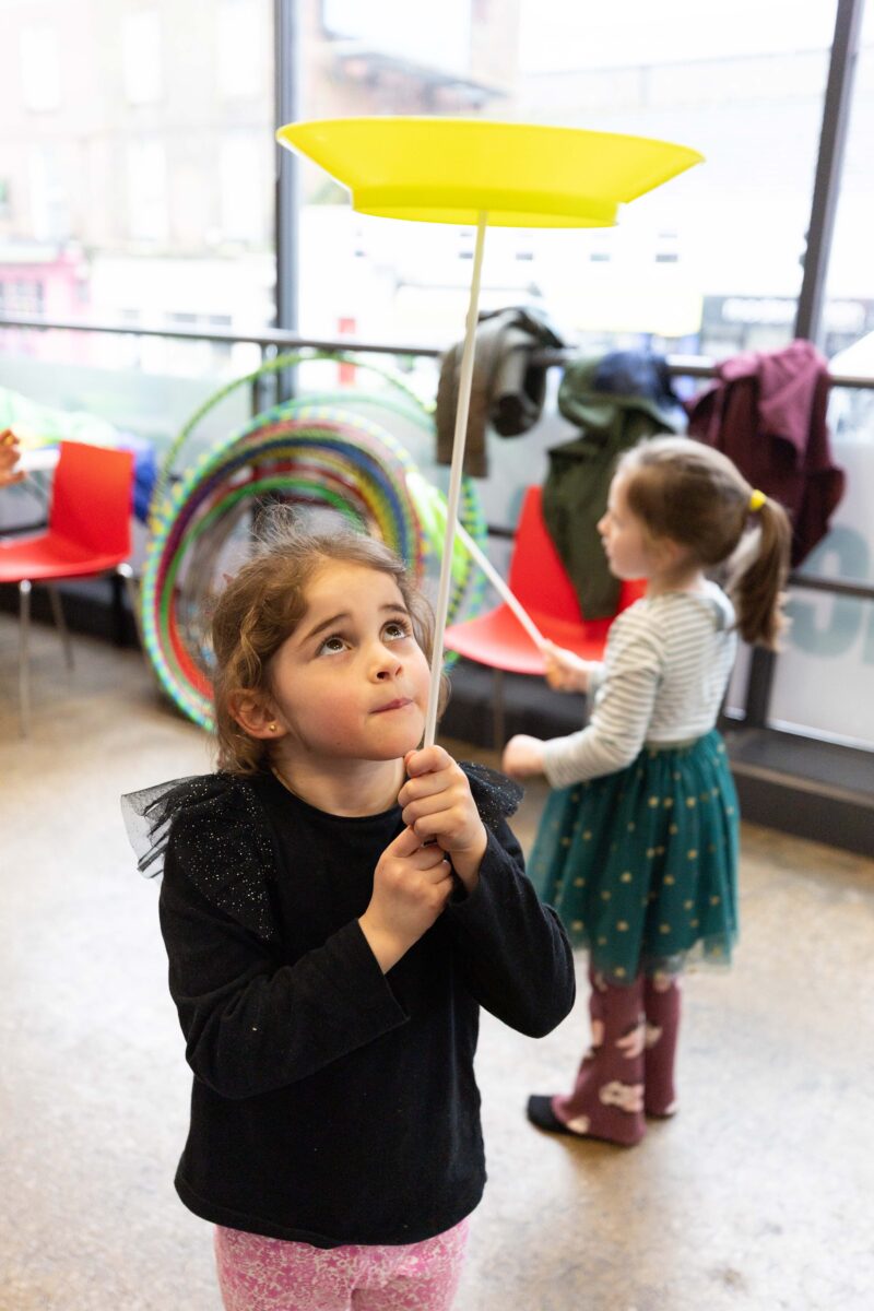 Maria O'Connell enjoying the family circus workshop as part of the PURE Limerick Arts Festival. Photo: Eamon Ward.