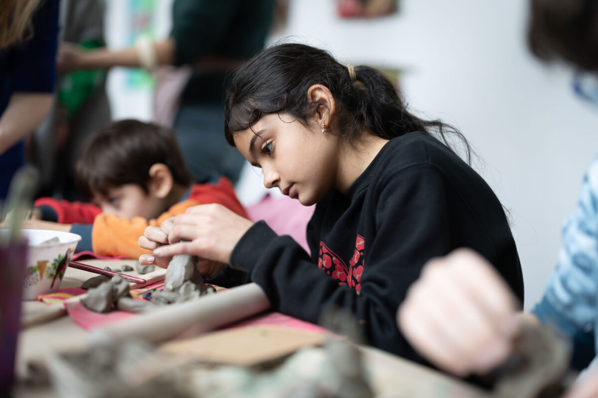 Sumayyah Janjua taking part in the clay workshop in the Hunt Museum at the PURE Limerick Arts Festival. Photo: Eamon Ward.