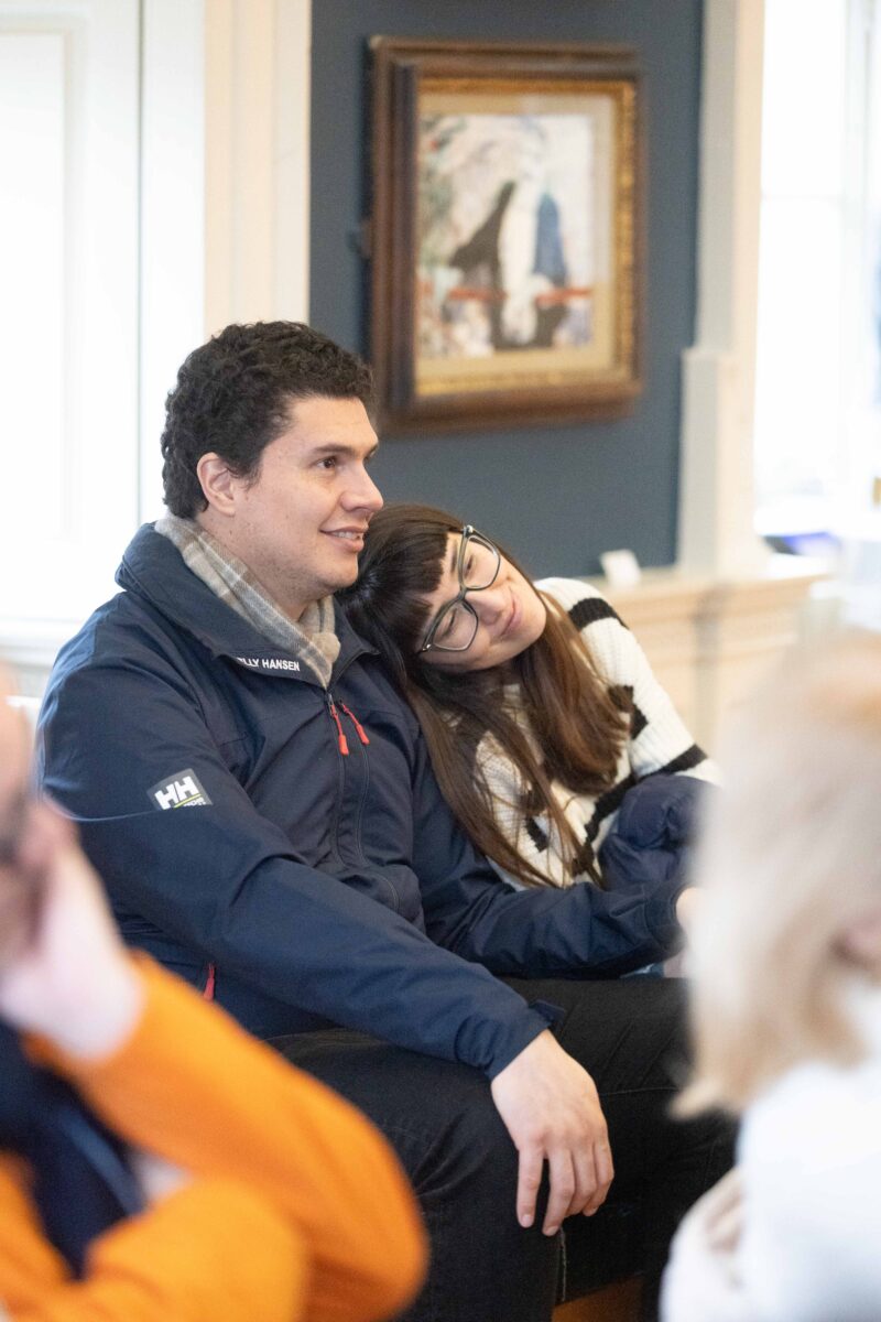 Brid and Daithi Enright taking part in an arts class in the Hunt Museum at the PURE Limerick Arts Festival. Photo: Eamon Ward.