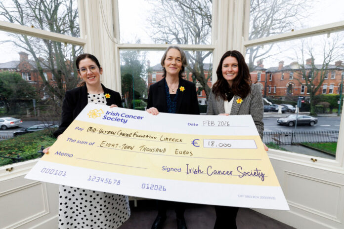 The Society presented €18,000 to Mid Western Cancer Foundation to deliver the services. These free services can be availed of by cancer patients, survivors, and their family members.