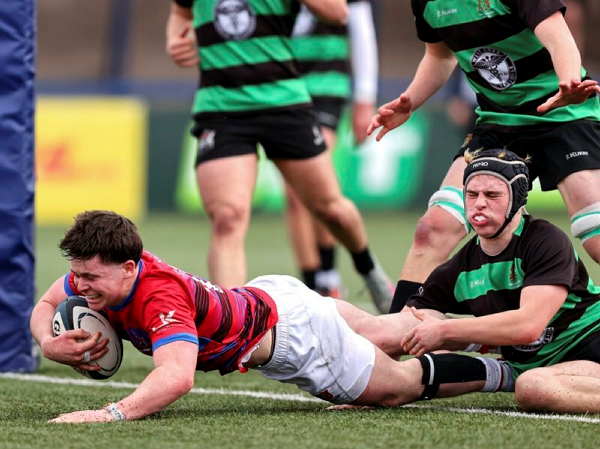 For Andrew O’Byrne’s fine side, the tries flowed through Ryan Angley (2), Brendan Minogue (2), Jack Meaney and Michael Landers, while in-form kicker Oisín Madden tacked on points from five conversions and a penalty.