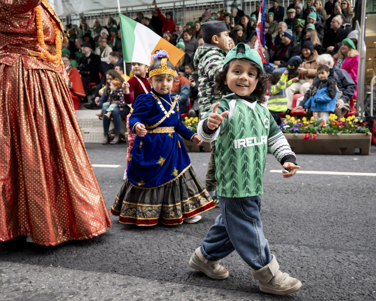 Young performers from the Limerick Nepalise Community pictured at St Patrick's Day Paraade in Limerick City where runner Ava Crean was Grand Marshal. Photo: Don Moloney