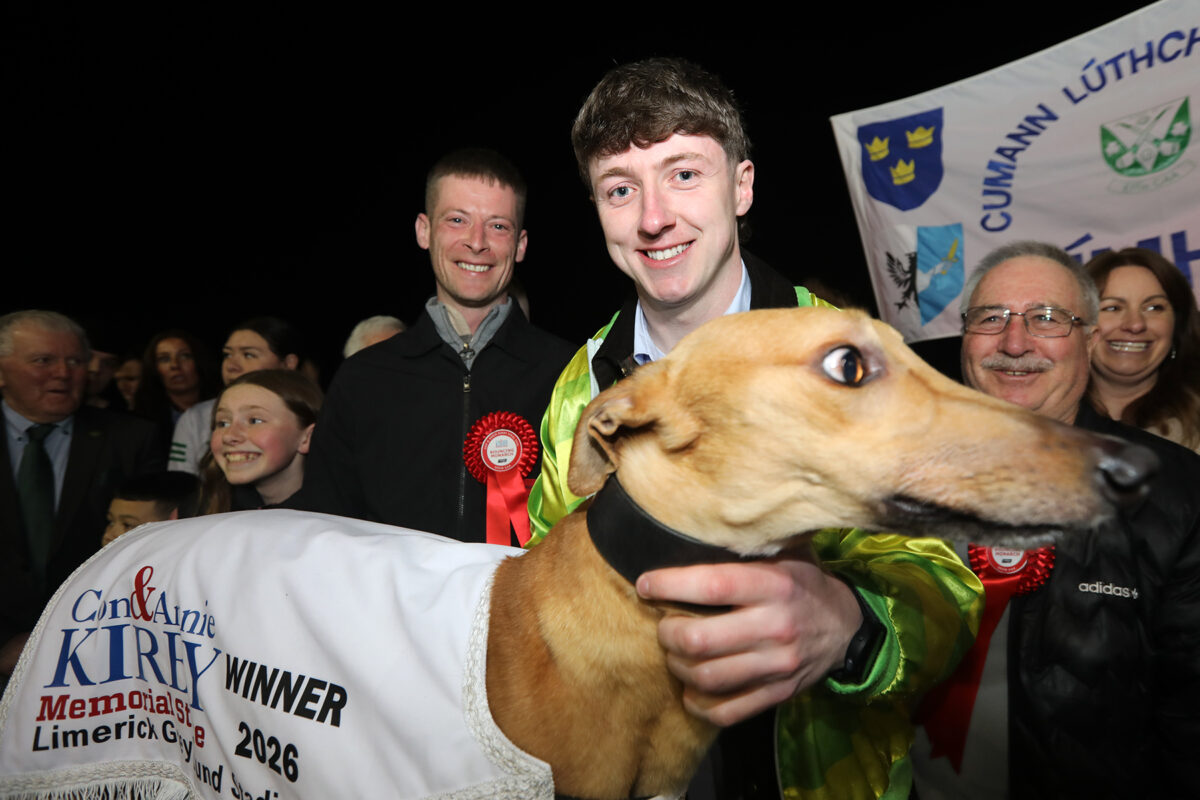 On the undercard, Brickhill Moana, trained by Vincent McKenna, won the Seán O’Connor (Claughaun) Memorial A1 Final and Fleeting Moment, from the kennels of Galway handler Gerry Holian, The Limerick & Clare GOBA A2 Final.