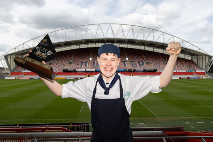 Accepting his award, Ciarán described the experience as highly rewarding, noting how much he had learned and acknowledging the support of his mentor Chefs Diarmuid O’Callaghan and Carol Dollery, school, and family. He was supported on the day by his family, teachers, classmates and principal Liam O’Mahoney, who celebrated his success at Thomond Park.